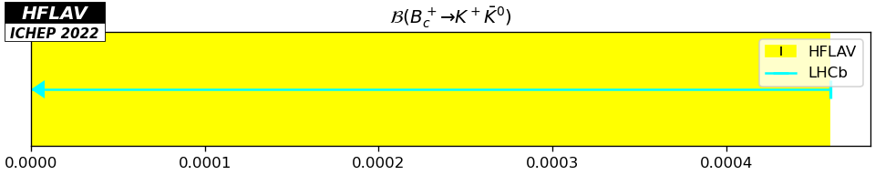 | Average | $< 4.6$ | Derived from the ratio in the previous entry using ${\cal B} (B^+ \to K^0 \pi^+) = (23.97 \pm 0.53 \pm 0.71)\times 10^{-6}$, $f_u=0.33$ and $f_c=0.001$. | ||
