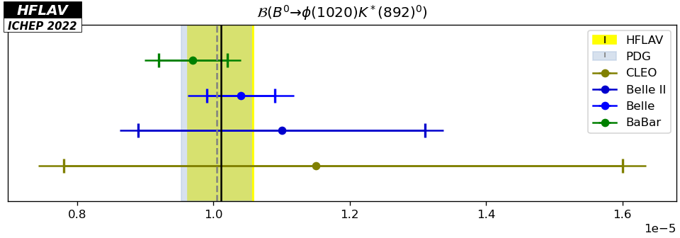 | LHCb | ${\cal B}(B^0 \to \rho^0(770) \rho^0(770)) / {\cal B}(B^0 \to \phi(1020) K^*(892)^0)$ | 0.00 |