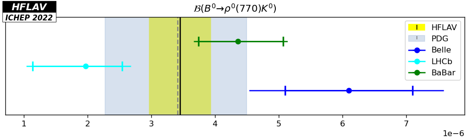 | Average | $3.45 \pm0.48$ | 30.00 | $p=0.0016$ (ndf=11) | The PDG uncertainty includes a scale factor. |
