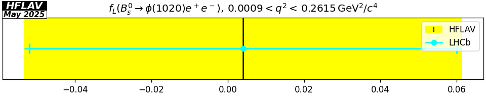$f_L(B_s^0 \to \phi(1020) e^+e^-), \, 0.0009 < q^2 < \, 0.2615 \,\mathrm{GeV}^2/c^4$