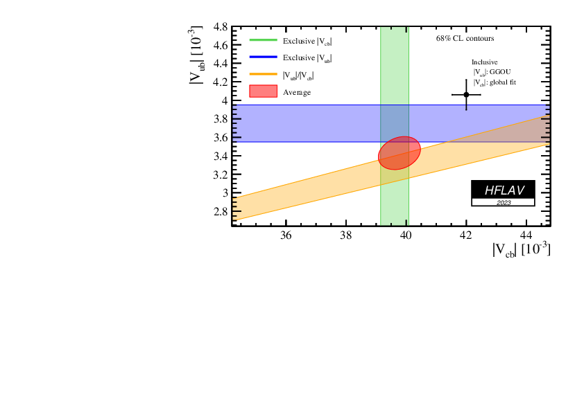 The result of a combined fit using as input only the exclusive |Vub| and |Vcb| measurements, with the |Vub/Vcb| measurements from LHCb gives the following results